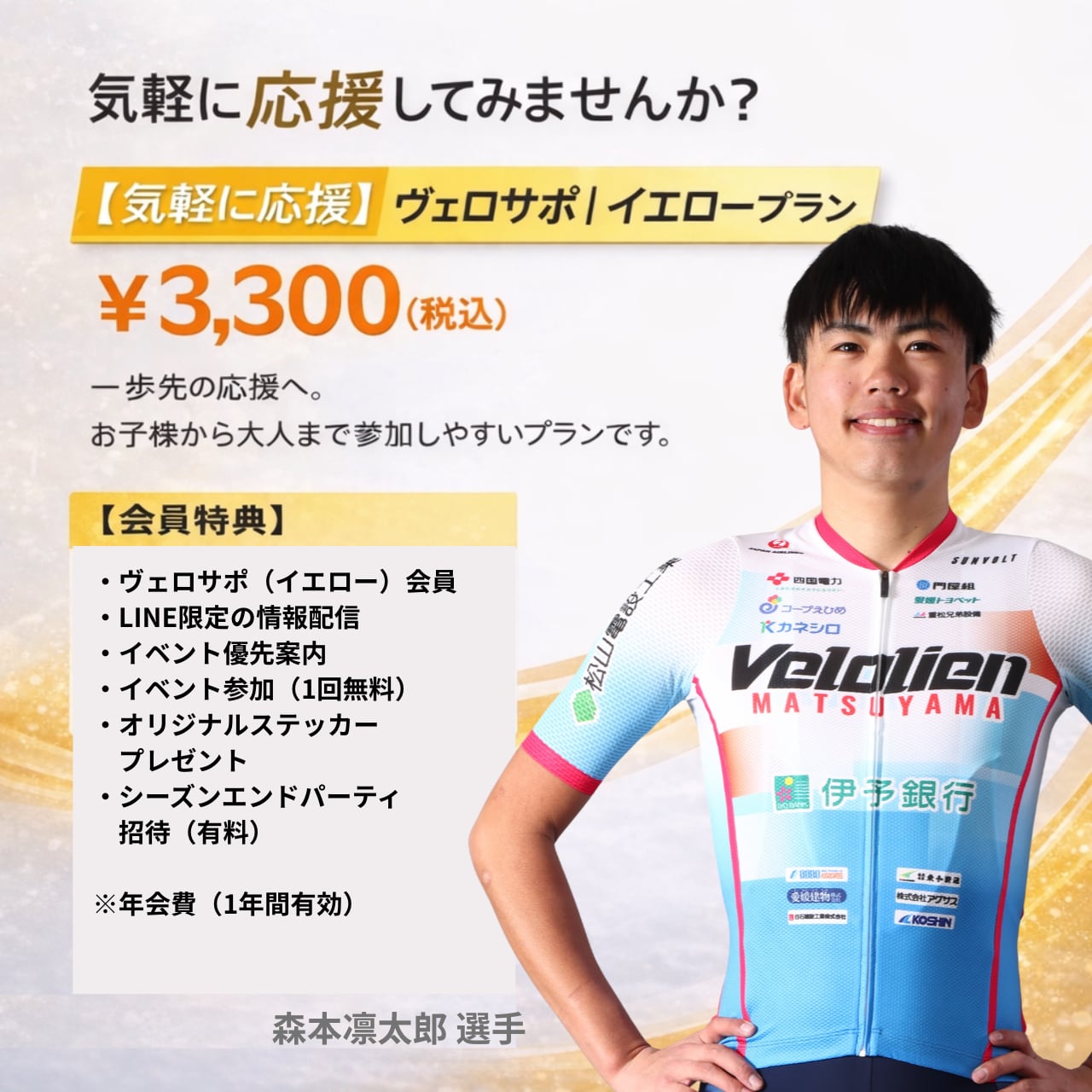 【気軽に応援】ヴェロサポ|イエロープラン(年会費3,300円)