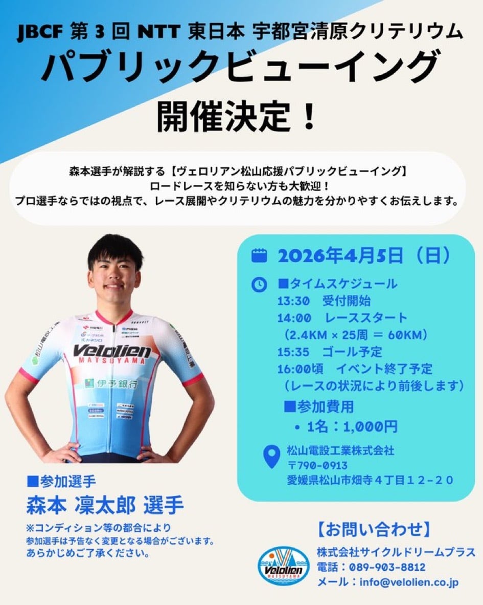 【ヴェロリアン松山応援・パブリックビューイング】2026.4.5「第3回NTT東日本 宇都宮清原クリテリウム」